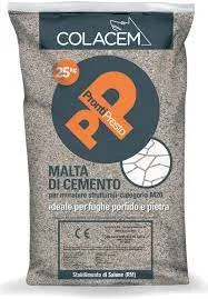 Malta di Cemento Colacem M20 kg 25, prodotto predosato da muratura a prestazione garantita, idonea per la muratura e lavori in genere, specificatamente per fughe in esterne di pavimentazione in porfido.
